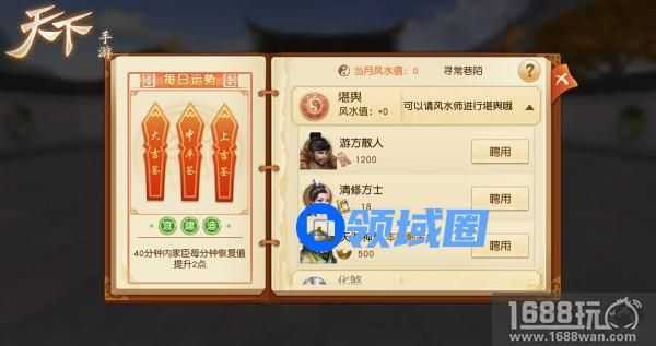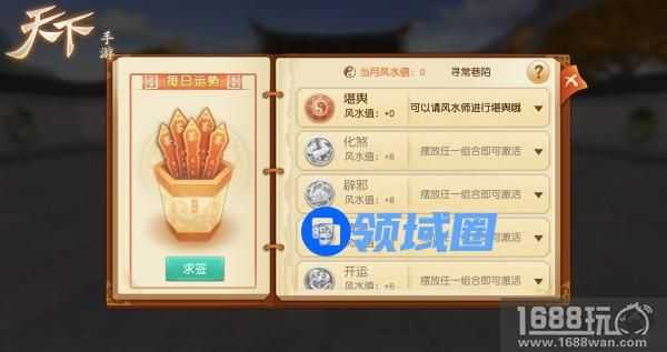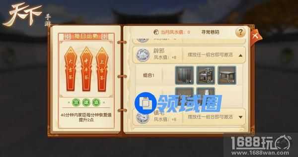 自古虽有风水轮流转之说,但也要因地、因事制宜。风水涣卦占行运,玩家想要家里诸事都宜,天天顺风顺水,不妨每月请风水先生测算一下时运,从家具摆放、当月吉凶、顺境逆境等几个方面给出指点。若是当月风水不佳,还可以请风水先生帮忙逆转。风水涣卦告诉我们,世间万物是发展变化的,想要时刻关注时运变化,少侠除了测当月吉凶,还可以通过抽签测算每日宜忌。家园风水系统开启后,《天下》手游日常玩法增加了抽签打卦玩法,少侠可通过铜币测算与抽签测算当日运势,若是黄道吉日宜加护,可是一个一个洗炼的好时机,千万不要错过哦!