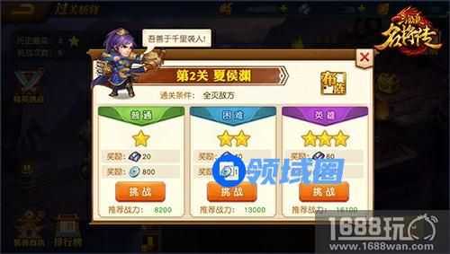 1.闯关性玩法,每个关卡npc区分为普通、困难和英雄三种难度,玩家可任选难度挑战。2.每个关卡有特定通关条件,达成即挑战成功,可进入下一关继续挑战。