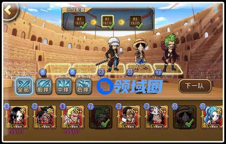 新世界路飞5人局套路因为着眼中端局,所以笔者并没有将突破黑胡子、突破黄猿等重量级人物加入其中。此阵要旨在于消耗,而不在速战。以突破大熊为核心,通过新世界路飞的加速,全队打出强力减能的机会很大,而这正是消耗战的基础。控制方面,抛开单人控制技能不说,全队每人都有击倒技,配合击倒系核心巴尔托洛梅奥和藤虎,控制力是足够的。当然,此阵在高端局的表现不会太出色,但在中端局同级竞争中当有较好的发挥。