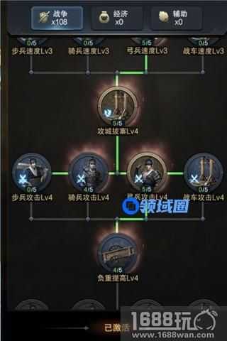 战争,是游戏发展的主旨。过了新手保护期,每个主公都会面临被沦陷的危险,只有提升自身的综合实力,减少兵损,才能更加快人一步发展。做个聪明的主公必定也知道,天赋点的获取都是很难得的,每一点都要用在兵刃上。如小编我,看重弓兵的攻击性强大,便主要生产跟发展弓兵,提升弓兵等级的同时,也将主要的天赋点加在弓兵上,使其攻击力非常突出。各位主公也可以按照自己的实际情况采用不同的强化方案,打造属于自己的专属超强军队,利用兵种相克属性来打倒对手。所以,建议主公们是要激活战争跟经济两个天赋的,到了后期关键时候还能切换使用。