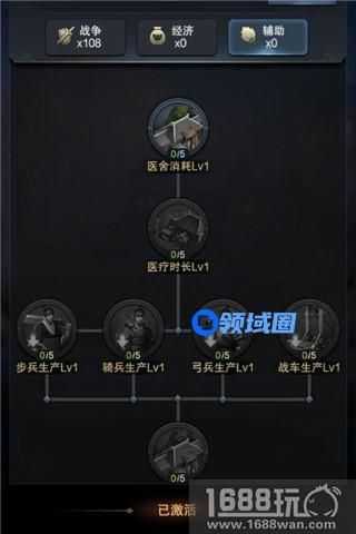 辅助,能铸百万雄师成更强战魂。辅助天赋对于很多主公来说,并不是特别重要,但是对于经常带兵打仗,经常死兵伤兵的主公来说,花费很长时间来医疗士兵进行训练,也是等得焦灼。所以,缩短治疗时长与缩短训练士兵的时间的作用就发挥出来。主公们也可激活辅助,关键时候协助自身更快医兵产兵。