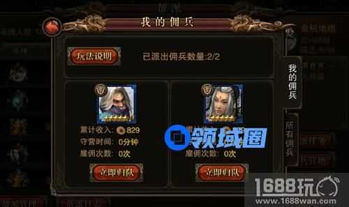 佣兵营地是玩家获取铜钱的一条捷径,玩家可以派遣豪侠至营地,当豪侠放入营地内的时间到达30分钟及以上,就可以为玩家带来一定收入。帮派内所有成员都可以支付铜钱租用营地内的豪侠,被租用可以获得租用佣金。需要注意的是,佣兵仅可用于副本地图并且仅限一次,不可用于日常PK。【击败boss稀有道具等你来拿】