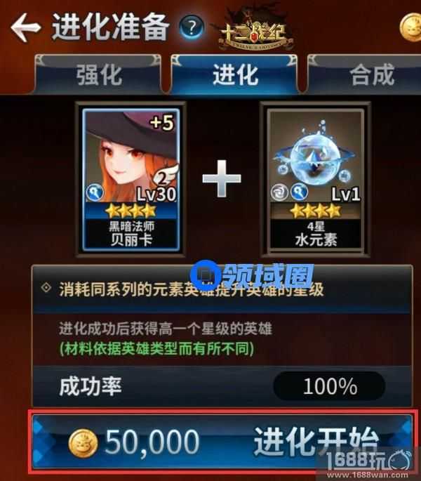 另外,英雄进化中,各种元素也是必不可少的。魔法型英雄使用水元素、攻击型英雄使用火元素、防御型英雄使用土元素、辅助型英雄使用光元素、全能型英雄使用暗元素。(图3:十二战纪进化)