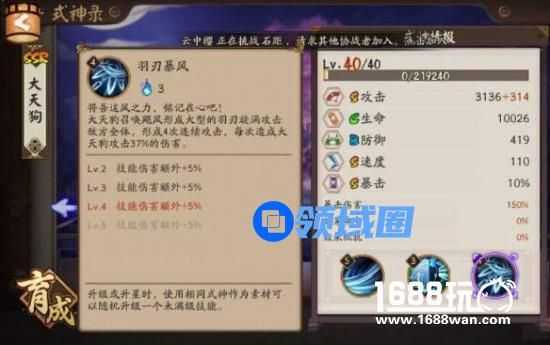 一技能风袭:普攻造成100%伤害,没有特点。二技能钢铁之羽:被动技能,满级提升15%的攻击加成和15%的暴击伤害,并可免疫一次硬控,免疫硬控这个特点是大天狗能够反手控制的核心技能。注意不能免疫减防、减疗等软控。