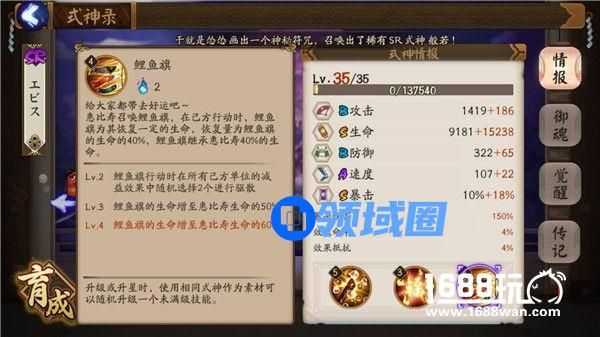 技能一定要提升等级,等级越高,恢复的血量也就越多,鲤鱼旗存活的也就越久,升级还附带驱散DEBUFF的效果!!!!