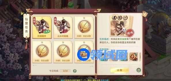 仙盟任务:这一点很细节,我只选困难的做,这样奖励会好一点,其他的我都删除了,需要等待10分钟。