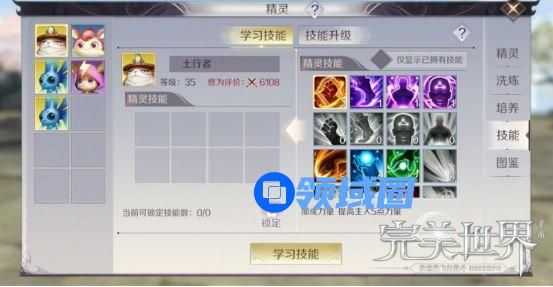 精灵技能:精灵技能是精灵的被动技能,可以通过消耗技能书学习最多八个不同的被动技能,同样也能消耗相同技能的技能书进行升级,要注意在学习精灵技能时,要根据精灵类型来学习被动技能,例如物理攻击型精灵自然而然是选择增加力量和输出能力的被动技能!