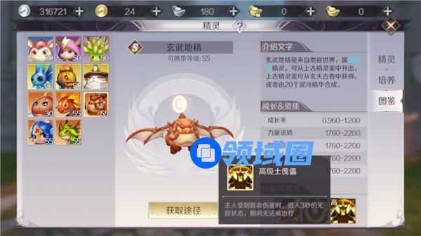 说了古橡之灵,也来说说玄武地精,玄武地精的高级伤害吸收和高级土傀儡非常给力,高级伤害吸收能够每26秒提供一次免伤机会,而高级土傀儡可以让玩家在受到致命伤的时候进入3秒无敌。所以这个宠物就比较适合脆皮或者近战职业了,例如法师和武侠职业。
