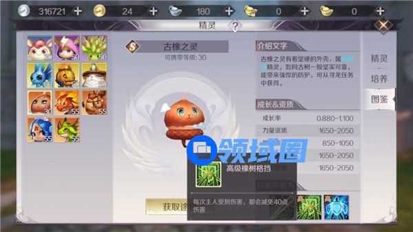 属性分配方面,就拿古橡之灵来说,防御技能方面高级橡树格挡可以降低玩家受到攻击伤害40点,高级护主可以让玩家在生命值一半以下时获得一个持续15秒能够减伤12%的护盾。这两个技能都可以有效的保护玩家,但是玩家角色自身坦度也有一定需求,所以在所有职业中适合古橡之灵的职业就是妖兽这个坦克职业了。