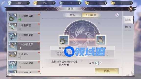 需要关注一点,当来源装备的精炼等级小于等于12级时,精炼转移无需消耗道具,但来源装备的精炼等级超过12级后,需要消耗斗转石,不过转移的成功率是百分之百的,无需担心转移失败。