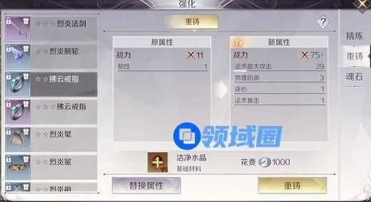 装备重铸有概率重铸出稀有的属性,更大限度的增加修真者的战力值,为大家推荐一个快速提战的方法,可以优先总体提升全部装备的属性值和属性的数量,后续资源富足时,则可以根据职业定位等需求来追求对应的想堆的属性。