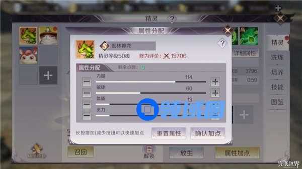 如果选择的是物理攻击型精灵,就主加力量和敏捷,力量可以提升精灵的物理伤害,而敏捷则可以提升精灵的攻击频率。