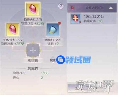 在魂石镶嵌方面,我们也是同理,个镶嵌槽位,可以以火红之石为主,提升物理攻击能力,并且可以以“2+1+1+1”的方式添加火红之石、流火之石、轩辕之石、锐利之石,按比例提升物理攻击、物理暴击、物理穿透、命中这4项属性。