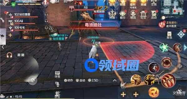 鬼面狼蛛的第二类技能是在自身周围进行毒液溅射,为了不让boss乱跑,这里妖兽最好硬扛下,为了减少羽灵的回复压力,在硬抗溅射毒池之前,我们最好使用吞噬技能,减少自身受到的伤害。还是很可观的。