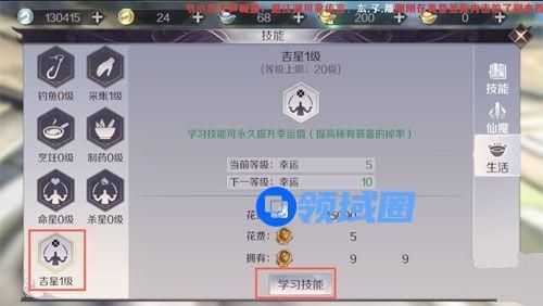想要提升幸运值,大家只需要去学习【吉星】技能即可,吉星是一个【生活】技能,打开自己的技能之后,可以在右侧找到【生活】分类。切换到生活技能后就可以学习吉星了。想要学习吉星,除了需要花费银币,还需要有足够的【帮贡】,帮派贡献不足也无法学习吉星。