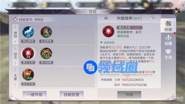 妖兽的特点是坦度较高,在战斗中主要负责吸引敌人伤害,为队友营造良好的输出环境,其主要任务并不是输出。所以,在对妖兽的职业技能进行升级时,需要结合妖兽的职业特点,应当优先考虑一些具有嘲讽、免伤等效果的技能,其次再考虑纯输出型技能。