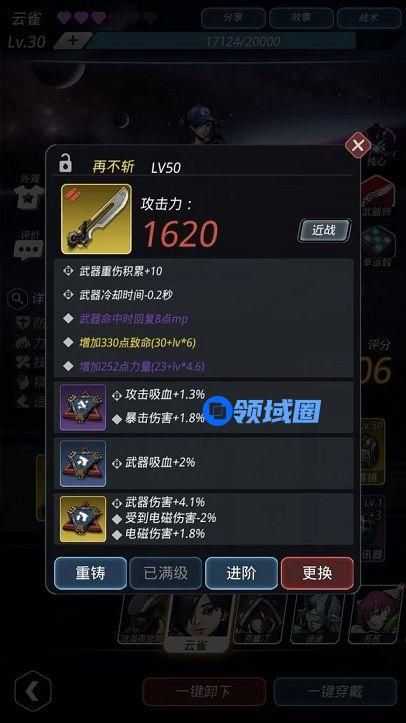 而另外的再不斩,重伤累计较少,虽然没有暴击的DEBUFF,但是附带了一个15%的吸血效果,总体表现也非常优秀,相比于国殇的暴力稍逊风骚,但是依然是目前T1级别的近战武器。