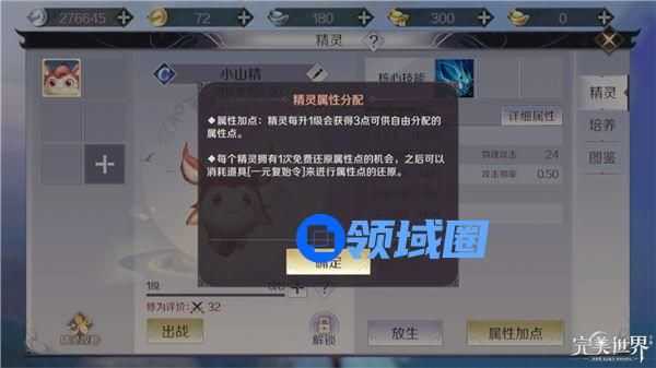 完美世界手游中精灵属性分配影响着精灵的战斗力,每升1级都有3个自由属性点可以分配,另外玩家如果对当前属性分配不满意,可以有一次免费的还原属性点机会,再往后则需要购买道具。
