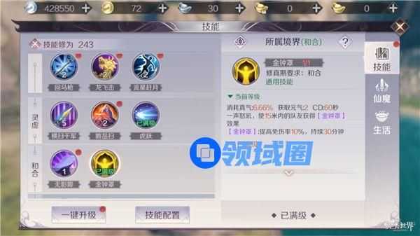 此技能为团队增益型技能,可以为一定范围内的队友提供金钟罩效果,即提高10%的免伤率。