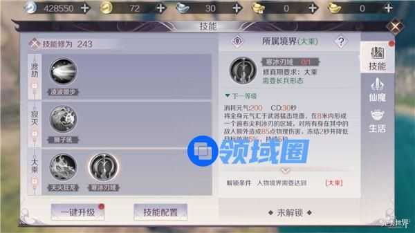 此技能为通用控制技能,命中目标可以使其减速。由于升级提升的伤害不多,可以缓一步升级。