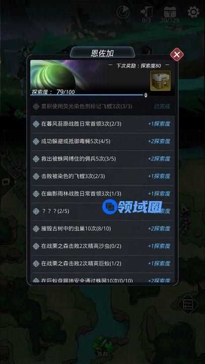 对于那些名称只是问号的探索度任务,玩家们只需要不断的刷图通关即可,前往幽影雨林之中,完成地图中的紫色问号的任务,不要遗漏任何的任务挑战,你会发现有一个任务就是海盗哨站,任务过程中,你将会遭遇到粘液,无论是用武力过还是技巧摇骰子过都可以,需要玩家完成五次,因此只需要玩家不断刷雨林这个地图就行了!