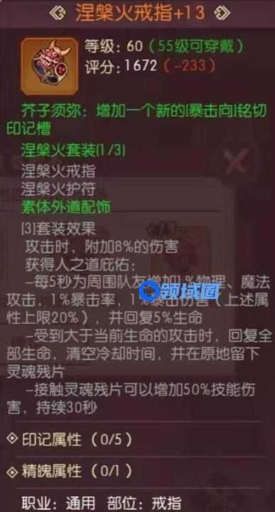 涅槃火:已经看到很多大佬选择这套了,因为狼和鹰也享受加成。我个人觉得不是特别合适。还是要看不知哪个版本优化天狩后,宠物是否有更好的输出水平,还很久远,不多说了。