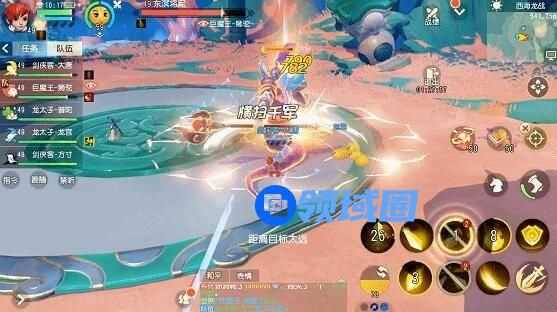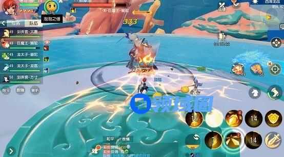3、敖烈会随机在玩家脚下释放气泡牢笼(紫色圈圈),数秒后目标会受到禁锢效果,此技能无法躲避,队友配合打破泡泡即可。