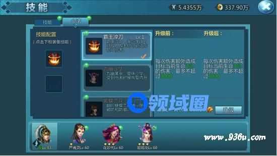 主角技能分为技能与心法。一个主角有六个主动技能,不同技能开启的等级不一样,例如最后一个必杀技是需要60级的哦,战斗中一次可以选择使用二个技能,主动技能可以通过使用侠义值来升级。