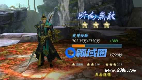 玩家每次在完成副本之后都会出现一个评分系统,一共有从一到三星三个阶段的评价,根据玩家的战斗时间来进行星级判定。并且玩家还可以通过免费和金币抽奖两 种方式来翻牌抽奖,金币抽出的奖励更为丰厚。并且越到后面的副本难度越大奖励也随之增大,从经验值到玉石,从白色装备到紫色装备,应有尽有。
