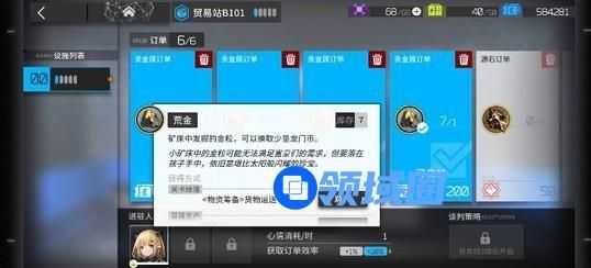 贸易站会定时的生成一些订单,我们通过制造站生产出的材料,除了狗粮用于升级干员之外,荒金可以用来换取龙门币。