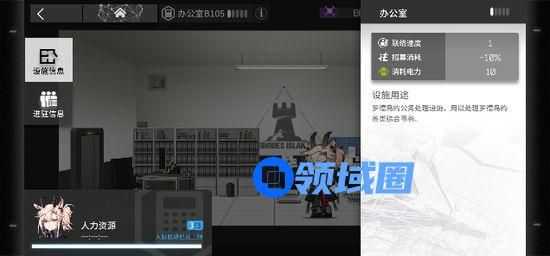 办公室一眼看到的就是减少招募干员消耗10%的作用,我就已经觉得很有用了,但是很多玩家可能不了解左下角的人力资源是个什么意思。
