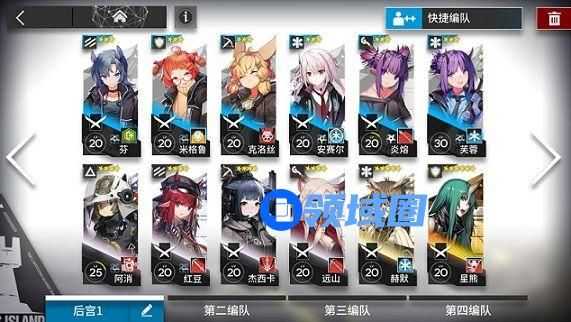 支援位的选择的话,没有强力盾就借个高星盾,没有强力奶就借个强力奶,没有练两个群法的话就借个群法。其余位置都是系统自带的最低配置了。
