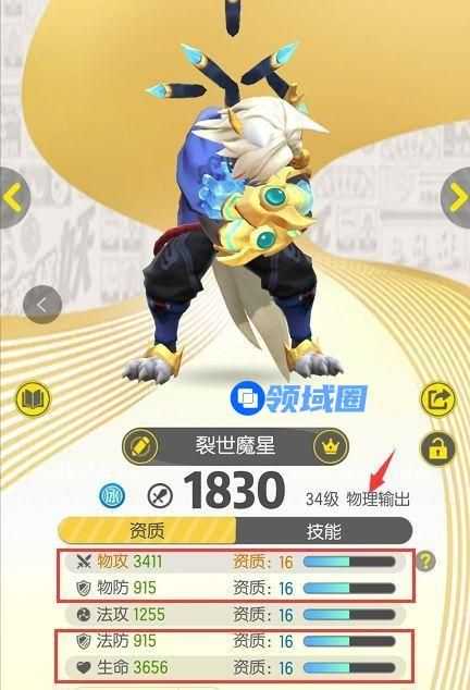 物理输出就看:物攻、双防和生命;法术输出就看:法攻、双防和生命;辅助和坦克就根据其技能的加成选择属性物物攻或者法攻,还有有双防、生命。(我这只巨灵神法防有点低啦,不过这只妖灵最重要的是生命!!)