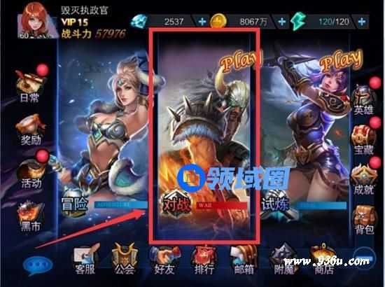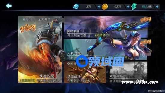 “对战”内涵 快速匹配、实时单挑、人机对战、统治战场以及双塔战场(目前尚未开放)