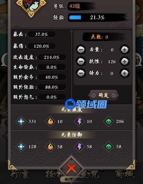 先说升级给的属性点,每升一级给3点属性点,非巨氪大佬不建议全力加点,怪物伤害很高,小关不说,每换一次图都做好会死的准备。推荐全抗性加点,每加15点抗性会提供1%的闪避几率,进一步提高生存概率。每加15点力量提供1%的暴击伤害,15点体力则提供1%的暴击。前期保住狗命过关要紧,死了的话体力还是会被消耗掉,所以以苟为主。