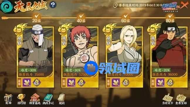 火影忍者OL无尽之域玩法与忍者考试差不多,难度方面自然是比忍考大。关于无尽之域,小编有很多要说的,一起来看看吧。