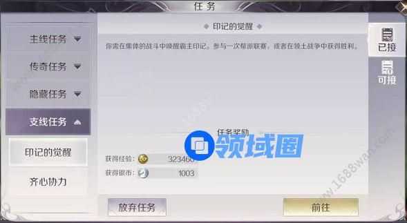 等级达到79级,即可开启霸王印记的相关任务,玩家需要加入帮派,按照任务提示完成任务即可获得霸王印记装备。这里要注意的是,参与一次帮派联赛,或者在领土战争中获得胜利,才能唤醒霸王印记!