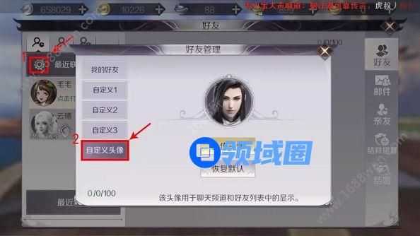 自定义头像的更改是在游戏中的好友界面里,点击设置就可以看到自定义头像。