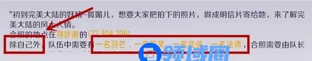 找到对应职业的玩家进行组队,到达指定地点后,合照需要由队长发起,拍照时要保证除自己以外的指定职业都在镜头中,合照结束之后记得点击分享,只保存相册是没办法完成任务的。