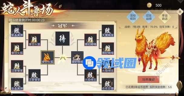 只有培养中该轮冠军魔兽的斗者,会获得该轮培养里该魔兽所消耗幸运币的倍数奖励,魔兽的奖励倍数会随全服斗者的支持情况实时变动,最终奖励倍数以魔兽培养阶段结束后为准。