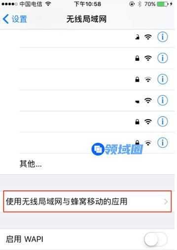 下面,我们进入设置-无线局域网-使用无线局域网与蜂窝移动的应用: