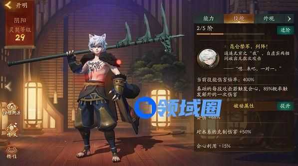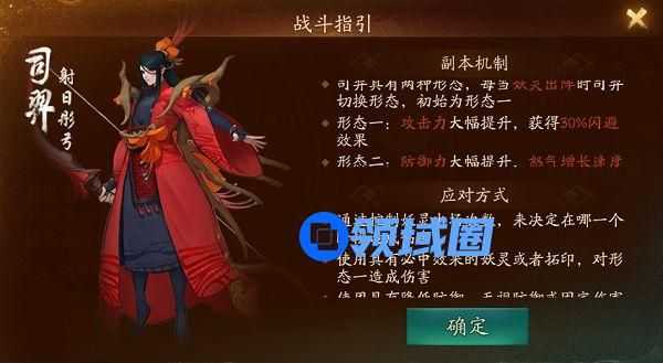 难点:司羿具有两种形态,每当妖灵出阵时司羿切换形态,形态一攻击力大幅提升,获得30%闪避;形态二防御力大幅提升,怒气增长速度加快。司羿初始为形态一。