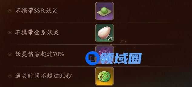 如果不追求金破,推荐使用高阶开明或者高阶大司命助战即可轻松达成通关时间不超过90秒的特殊挑战。如果追求金破,根据上文分析,推荐使用日系SR输出精卫,搭配兔二爷、阿缈等非金系辅助,为了保证精卫有足够的输出,建议嫖五阶满破金丝小枣精卫,