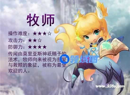 【职业介绍】牧师,是对使用圣典中语言,施展辅助医疗术法的职业者的尊称。牧师的法术传闻由莫里亚斯神祇赐予。因其救死扶伤的职能,牧 师向来被视为慈爱与救赎的象征,被称为最受欢迎的人。优秀的牧师可以使团队生存能力和战斗续航能力发挥到极限,牧师职业的价值也正因此获得完美的体现。