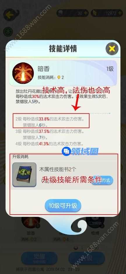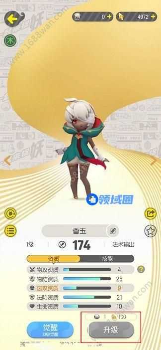 在妖灵的主界面上的技能处,三个技能都能升级,不过需要达到级别限制和拥有技能书才能升级。升级后的技能都会让技能伤害等方面提高,如香玉的暗香技能2级时,能造成33.8%法伤,禁锢敌人6秒。想要香玉变更强,御灵师要多多升级技能哦!