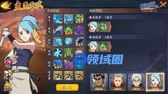 飞段的奥义只需20查克拉,低消耗的奥义可以配合凯【景门】联动输出,形成输出控制两开花的局面,水主提供解控以及追打的控制,是一套非常耐玩的治疗型阵容。