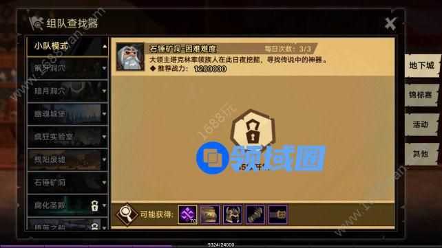 小队模式是地下城模式中最简单的一个,但相对于主线任务的副本来说刷起来也是很困难的。小队模式中有八个副本,其中困难难度最高的是石锤矿洞,腐化圣殿和堕落之船的副本分别在55级和60级时才会开放。除了钢牙洞穴之外,每个副本都有普通难度和困难难度两个模式。但如果你单打独斗,即使是普通难度也过不了。