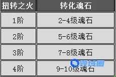 魂石扭转需要消耗扭转之火,不同等阶的扭转之火可在洪炉中将对应等级的魂石转化为同等级的其他魂石。