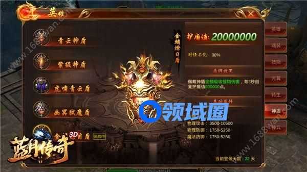英雄众多培养方法中,神兵与神盾是最核心的玩法。获取方面也极其简单,前五个神兵与神盾,可以依靠贵族等级和连续登陆解锁免费激活。而最强神盾金鳞燎目盾和最强神兵皇天血刃剑在开服时可以通过活动激活。但这里需要注意,在活动期间激活神盾神兵,后续会全额返还蓝月币。也就是白送大家神盾、神兵,所以激活要趁早。
