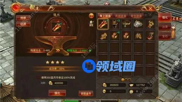 装备强化可以提升装备属性,强化需要消耗金币,强化等级越高消耗越大。当强化星位占满以后,玩家可利用金币购买星位(+8以后,购买星位需要消耗蓝月币)。